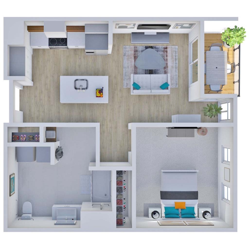 3d Floor Plan One Bedroom Apartment Finished Projects