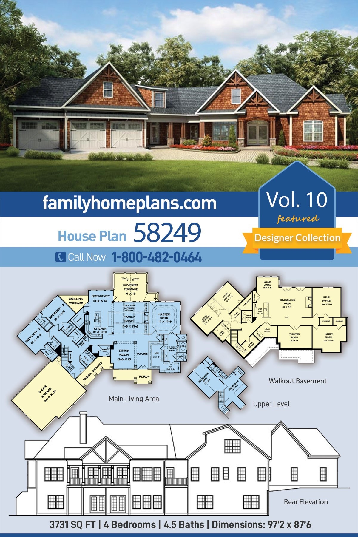 Plan 58249 Craftsman Style House Plan With Shingled Exterior An