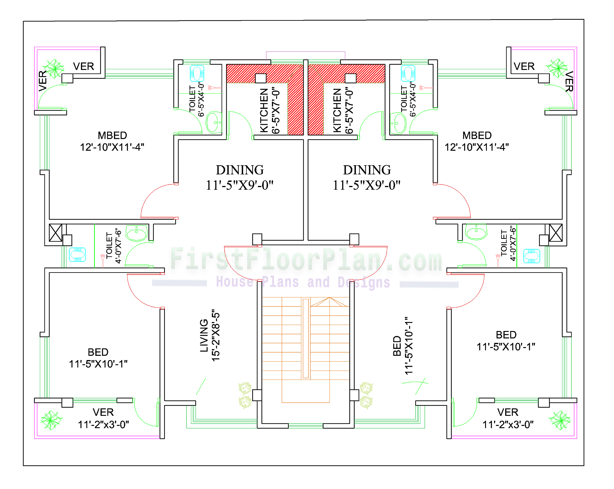 Two Units Village House Plan 50 X 40 4 Bedrooms