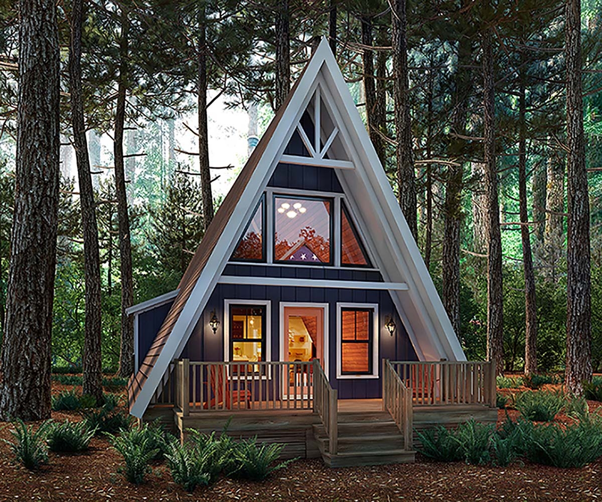 Many A-frame house plans with 3 bedrooms also feature open-concept living areas, allowing for easy flow between the kitchen, dining, and living spaces. Large windows and skylights bring in plenty of natural light, making the interior feel bright and airy.